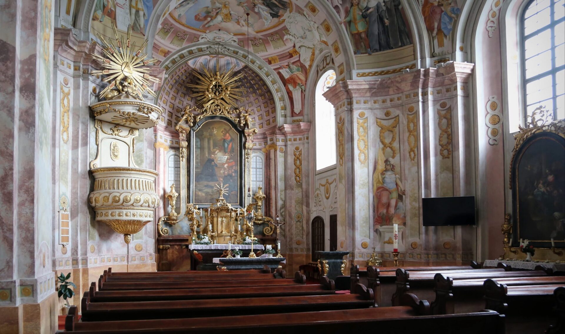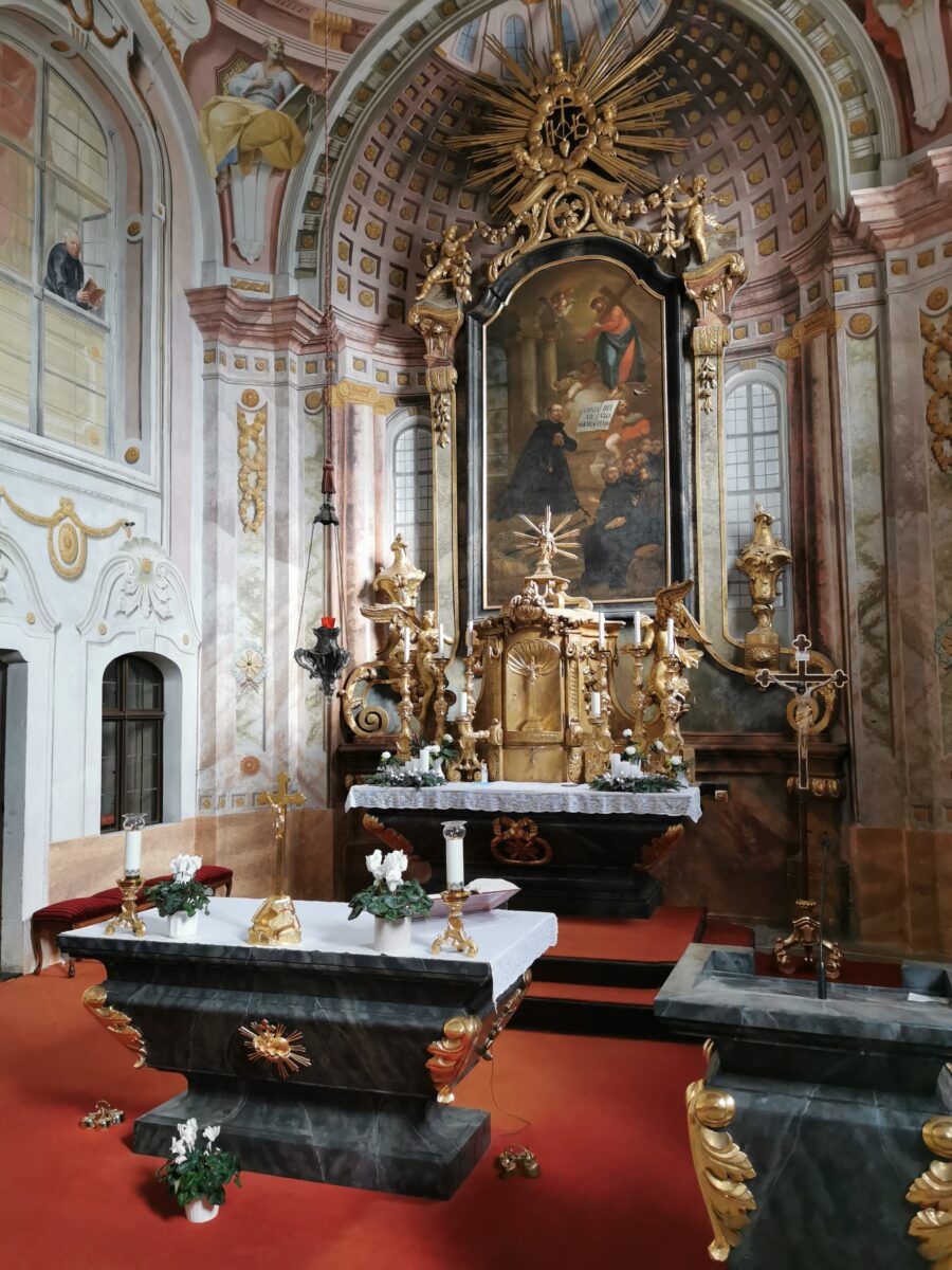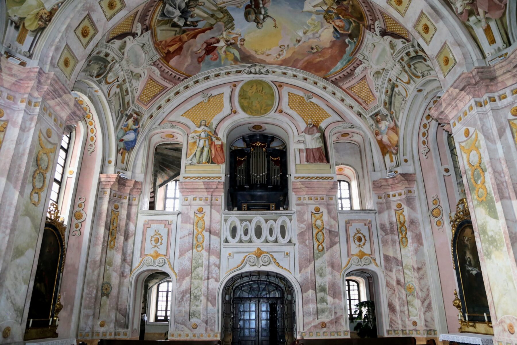 „Álkupolával, perspektivikus rövidülésekkel, festett oszlopokkal és hasonló eszközökkel érte el a művész, hogy az alapvetően kicsi és egyszerű tér hatásosan tagolt, nemes anyagokkal díszített, nagyszabású látszatot keltsen.” (Fotó: Thaler Tamás)