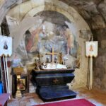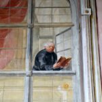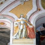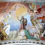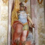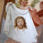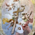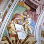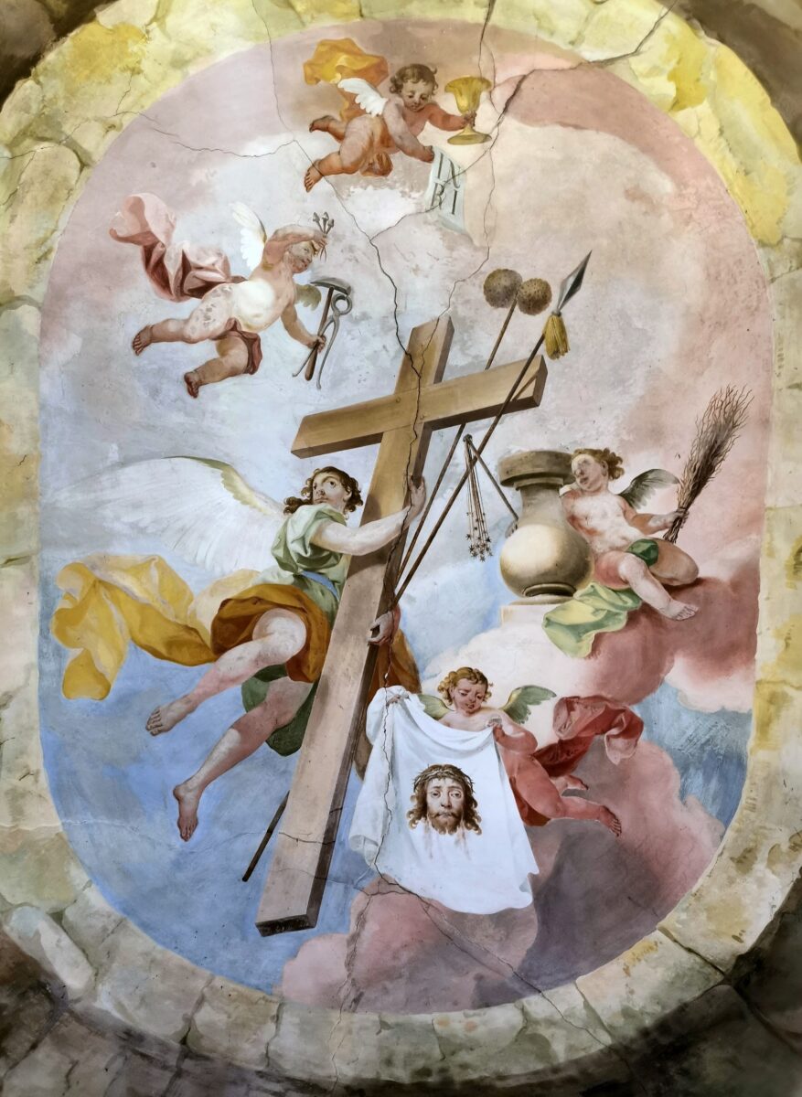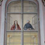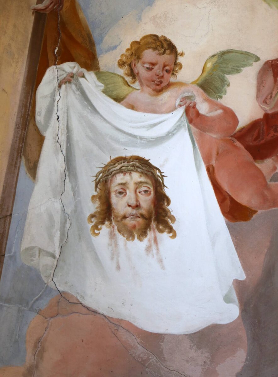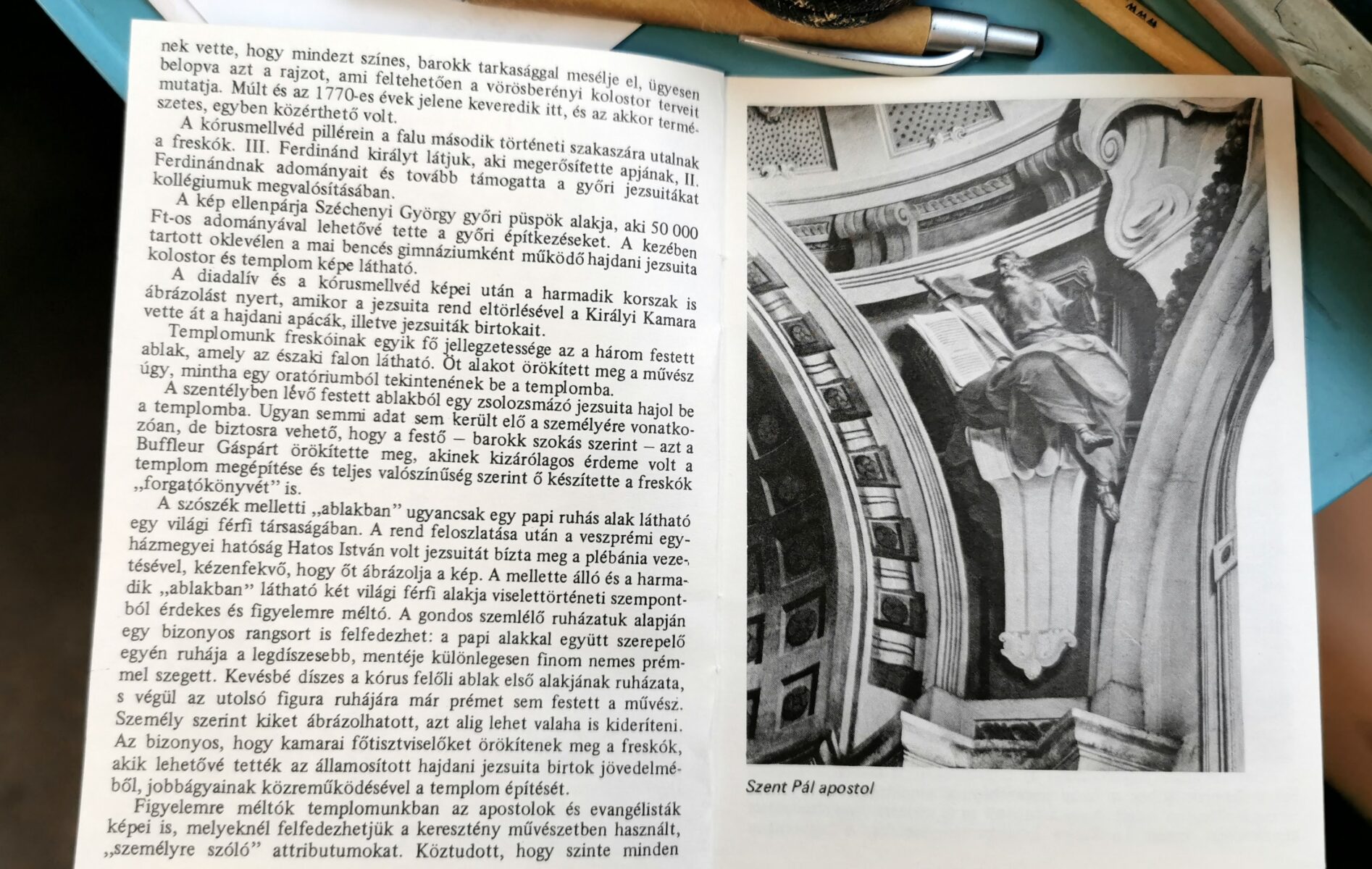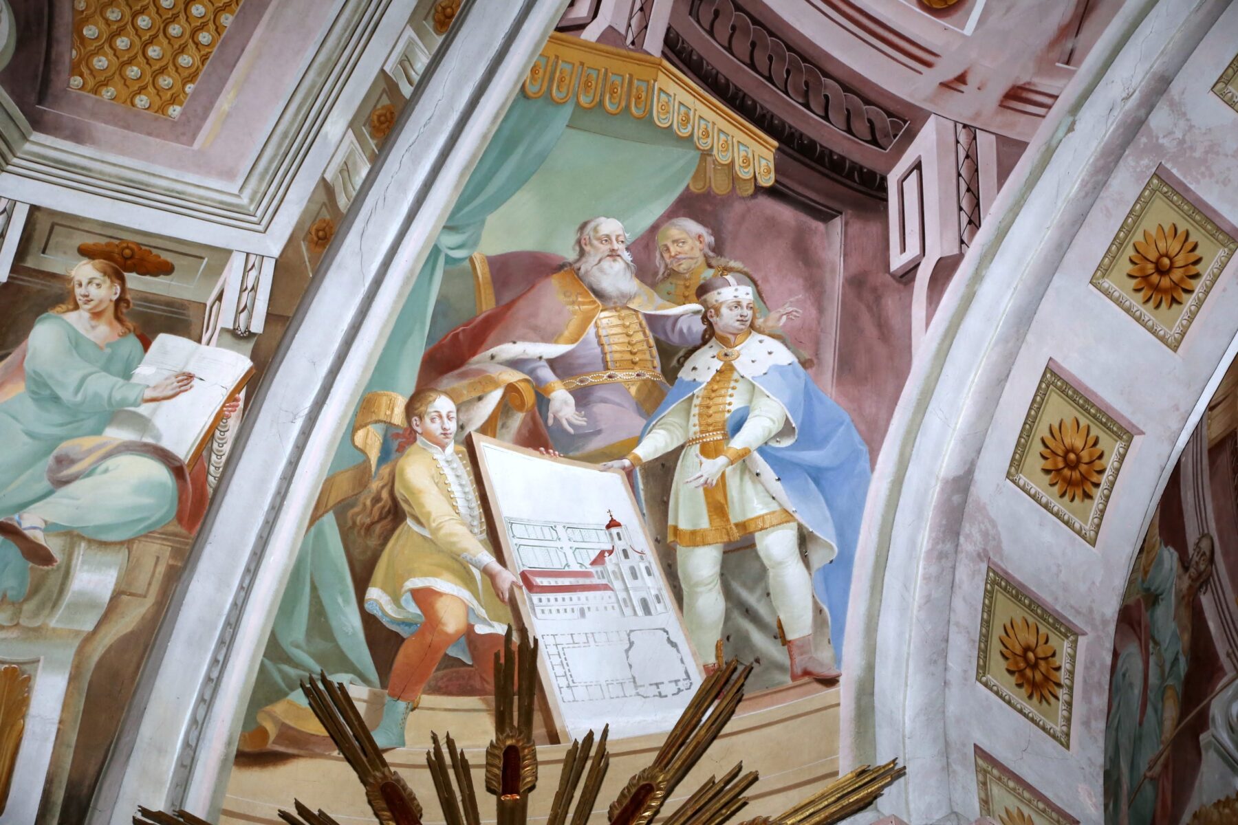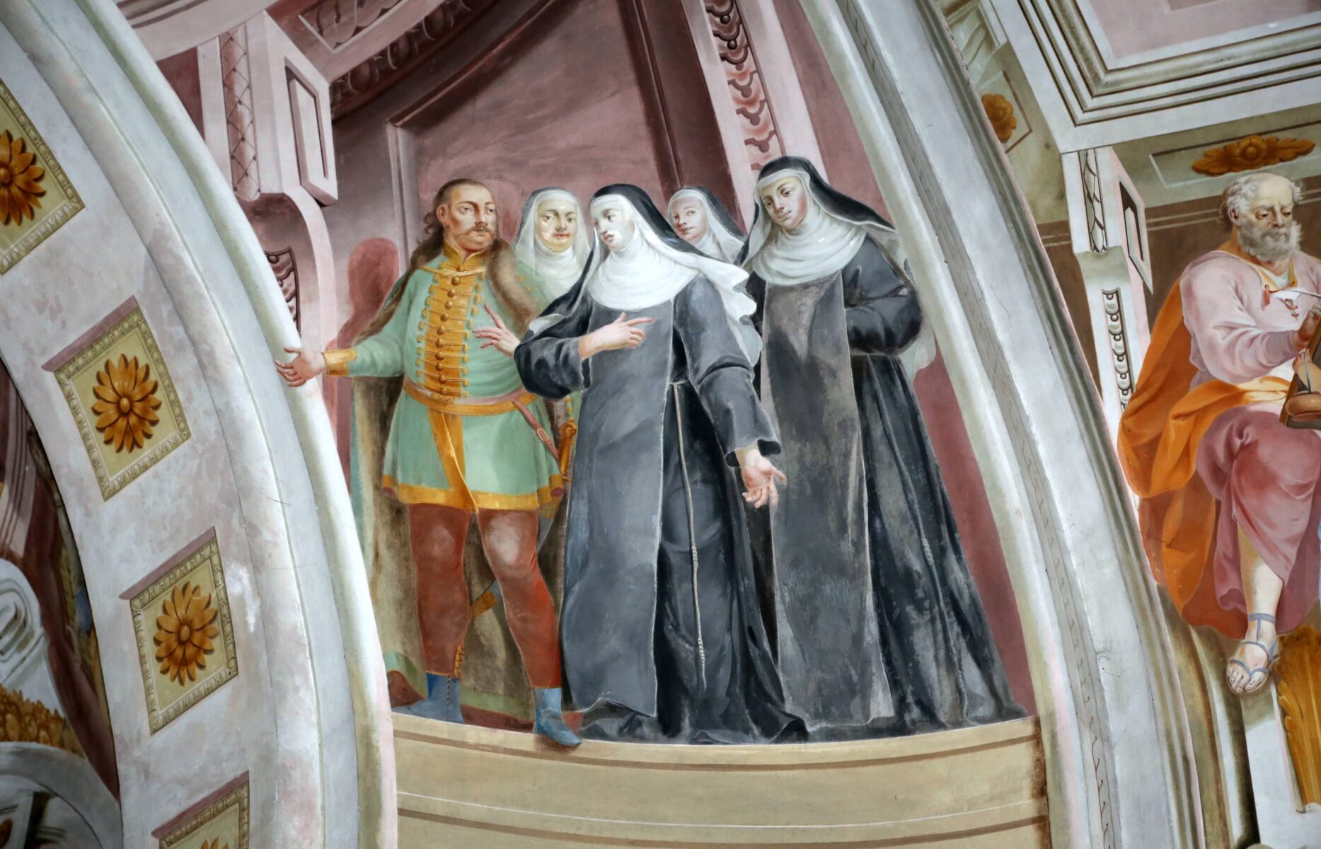 „Nem sikerült kideríteni, ki tervezte az épületet, de alakját minden valószínűség szerint megörökítette a falfestmények alkotója: ő az, aki kezében a kolostor alaprajzát tartja.” (Fotó: Thaler Tamás)