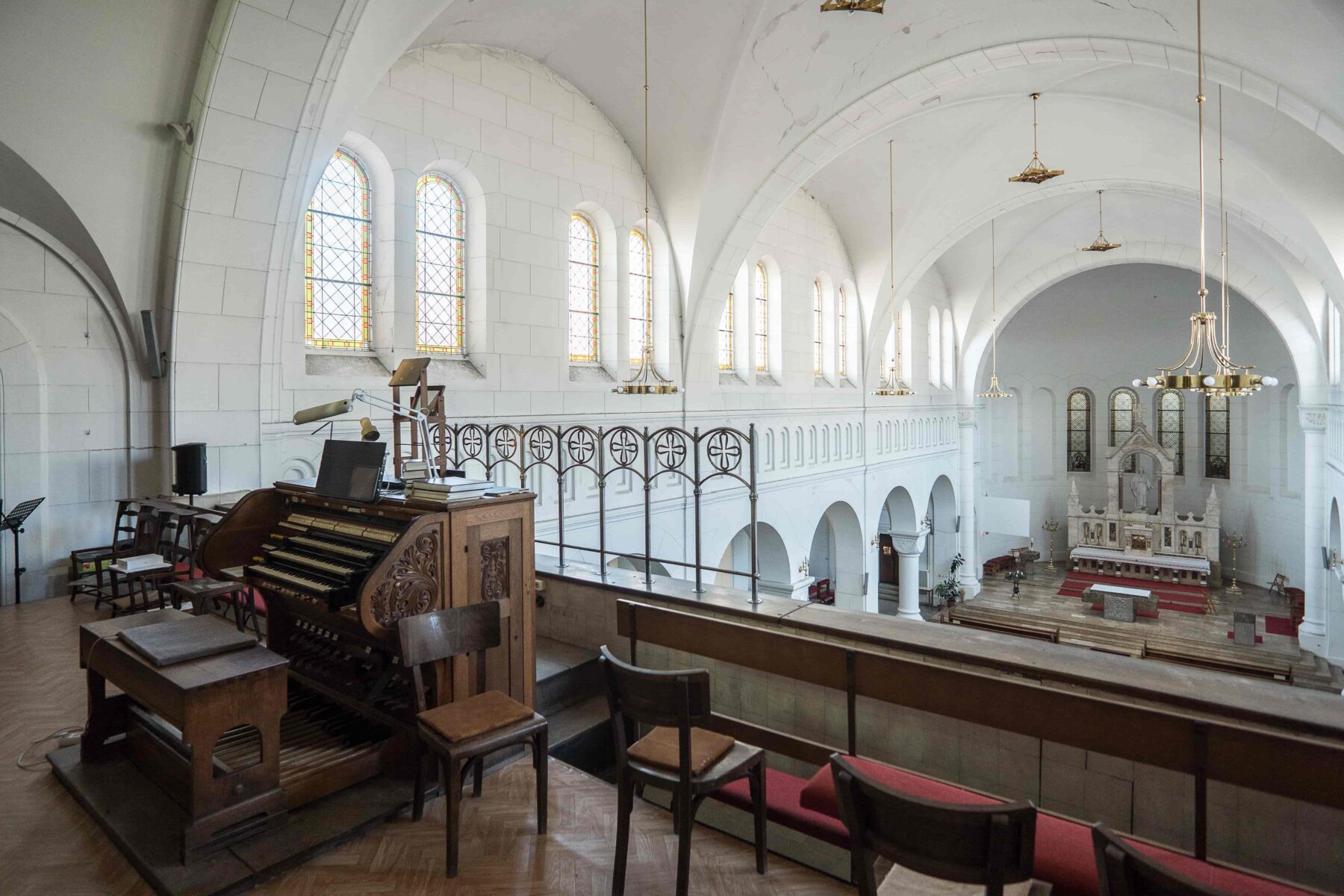 A húszas években egyre sürgetőbbé vált az építkezés befejezése. Az egyre több osztály, az egyre népesebb taná­ri kar és kisegítő személyzet már alig fért el az épületben, s Ignatianum né­ven a jezsuita utánpótlásképzést célzó kisszeminárium is nyílt, azaz a bent­lakók száma is megnőtt. 1926-ban in­dult meg a nyugati szárny újabb sza­kaszának kivitelezése, s ugyanekkor az időközben Kalocsára áthelyezett Zichy püspök újabb alapítványa ösz­tönzésével a Jézus Szívének szentelen­dő templom építése is megindult – pár­huzamosan a zugligeti Manréza nem kevésbé nagyszabású építkezésével. A templom külső és belső terveit már Fábián Gáspár rajzolta meg neoromán stílusban. Hogy a fővárosi, Mária ut­cai templomot állították-e elé például a jezsuita atyák, vagy sem, nem tudni, mindenesetre a pesti és a pécsi Jézus Szíve jezsuita templom közötti rokon­ság szembetűnő – a különbségek pedig elsősorban a jóval tágasabb pécsi te­leknek köszönhetők. A templom alap­kőletételére 1927 októberében került sor, felszentelését pedig 1930 júniusá­ban maga Zichy Gyula érsek végezte. (A tornyok építése csak az év novem­berére fejeződött be, a főoltár, a haran­gok és az Angster-orgona pedig csak a következő években került a helyére.)