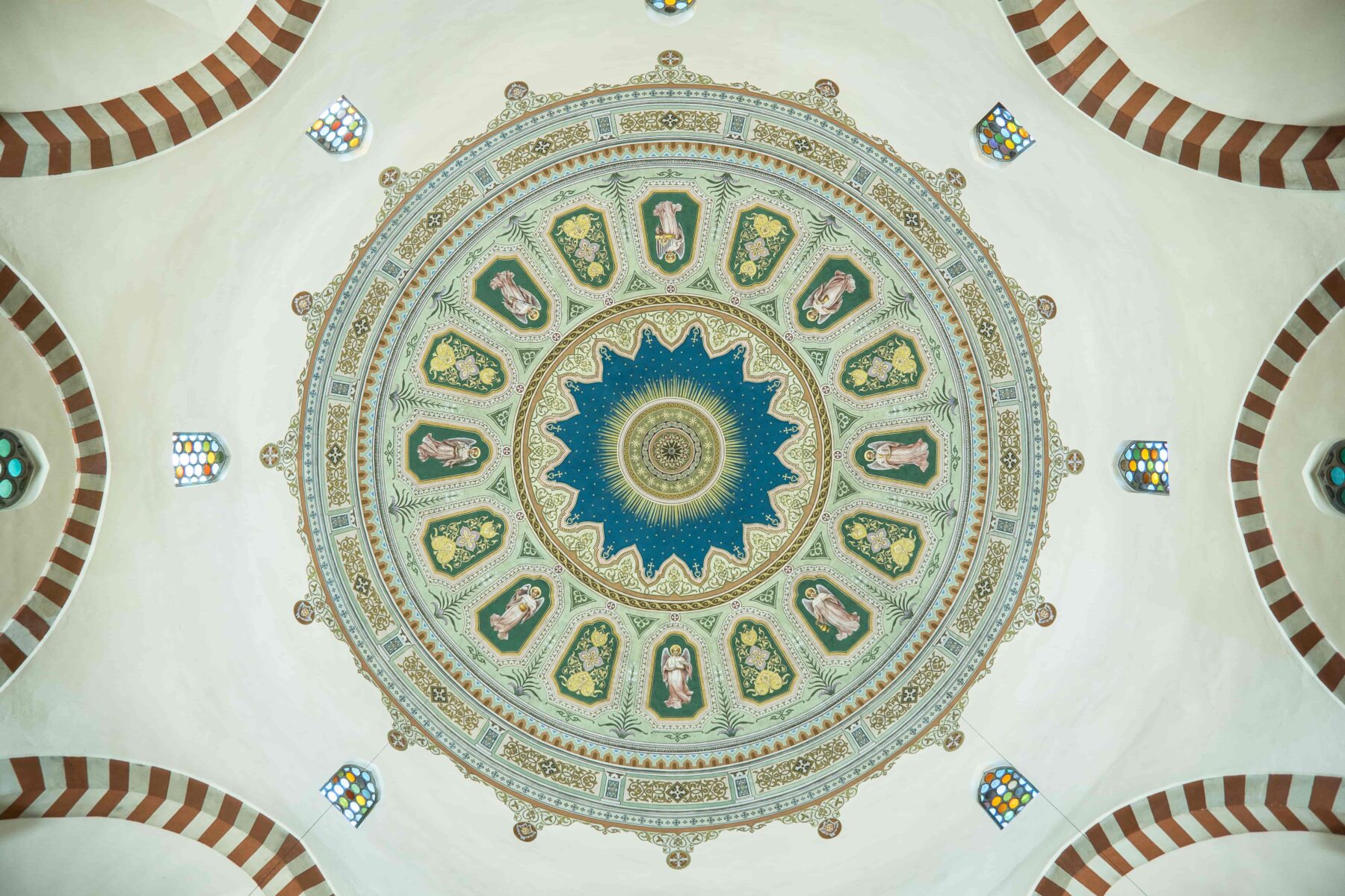A misszió központja Gázi Kászim pasa dzsámija, pontosabban az abból ki-, még pontosabban visszaalakított Gyertyaszentelő Boldogasszony-plébá­niatemplom körül alakult ki. A négy­zet alaprajzú, kupolával fedett török imaház ugyanis a korábban ott álló templom köveiből épült, és mivel Pécs visszafoglalását épségben átvészelte, a jezsuiták örömmel vették birtokuk­ba. Alaposabb átalakítása azonban csak fél évszázaddal később valósult meg: a XVIII. század közepén elbontották a minaretet, és zömök harangtornyot emeltek a helyére, a déli oldalhoz be­járati előcsarnokot, az északihoz ká­polnát és sekrestyét toldottak, s a sóha­jok hídjával kötötték össze a tér sarkán ekkorra már álló kollégiummal. (Eze­ket a barokkos, a dzsámi alakját szinte a felismerhetetlenségig elfedő toldalé­kokat csak a második világháború előtt megvalósult, a török kori állapot hely­reállítását célzó műemléki rekonstruk­ció során bontották vissza.)