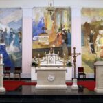 A mendei templom kívülről igen takaros, hívogató. Távolról a viharos szelek által megcibált, ferdén álló kereszt véteti észre magát elsőként, s amint belépünk, azonnal az oltárképre, pontosabban a szentély hátsó falát teljes egészében beborító, Loyolai Szent Ignác életének epizódjait ábrázoló triptichonra szegeződik a tekintet. Már csak azért is, mert némiképp szokatlan, hogy egy templomban ennyire szürreális hatású, modern alkotással találkozzunk. A templom építésének, titulusának és oltárképének szövevényes történetét Mende helytörténetének kiváló ismerője, Balogh Gábor meséli el számunkra. A szociológus, kutató néhány évvel ezelőttig a Pázmány Péter Katolikus Egyetemen tanított (nem mellesleg győri bencés öregdiák, sőt, 1979-ben rendkívüli civil hallgatóként teológiai licenciátust is szerzett), nyugdíjas éveiben választott lakóhelye történetét kutatja és publikálja számos újságcikk, illetve egy sor kiadvány és előadás formájában.