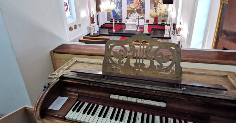 A templomban körbepillantva, a beáramló fényt megszűrő színes üvegablakokra lehetünk figyelmesek, melyek a helyi hívek felajánlásaiból készültek 1964-ben, és Jézus életének öt jelenetét ábrázolják. Az 1831-ből megmaradt misecsengő igazi kuriózum a XIX. század második feléből és a XX. századból származó templomi képek, szobrok, berendezési tárgyak között. (A szentélyt néhány éve újították meg Kovács György atya tervei alapján, ekkor készült az új szembemiséző oltár, s a padló gránit borítása.) A kóruson a régi Rieger orgona már nem működik, felette a toronyban három harang lakik. A Loyolai Szent Ignác nevét viselő nagyharang 1923-ban készült, felirata: „Isten nagyobb dicsőségére közadakozásból öntette a mendei róm. kath. egyház 1923 Szlezák László harangöntő által Budapesten”. A templomban Berta László plébános vezet körbe. László atya nemrég került a településre, Pécelen szolgál, Mendét oldallagosan látja el 2021 óta, előzőleg öt éven át Nagyorosziban és környékén működött. Mint mondta, a pandémia nem kedvezett az egyházközségi életnek Mendén sem, és a lezárások közepette nem volt könnyű megismernie a híveket. (A községben négyezren élnek, ebből 1833 fő vallotta magát római katolikusnak 2011-ben. Közülük rendszeresen száznál kevesebben, ünnepi alkalmakkor kétszer ennyien járnak a templomba.) László atya helyzete nem könnyű, hiszen nem a településen él, ám bízik benne, hogy a mendeiek befogadják. Mint a helyi lapban megjelent bemutatkozásában kiemelte, hogy az új szolgálati hellyel járó kihívás segít abban, hogy szellemileg friss maradjon, új oldaláról ismerje meg magát, hogy a hibáiból tanulva tiszta lappal újrakezdjen. Ugyanakkor a hívek számára is lehetőség az új lelki vezető, hiszen így alkalom nyílik arra, hogy a közösség újra átélje a kölcsönös szeretet és bizalom csodáit, és megújuljon, növekedjen hitében.