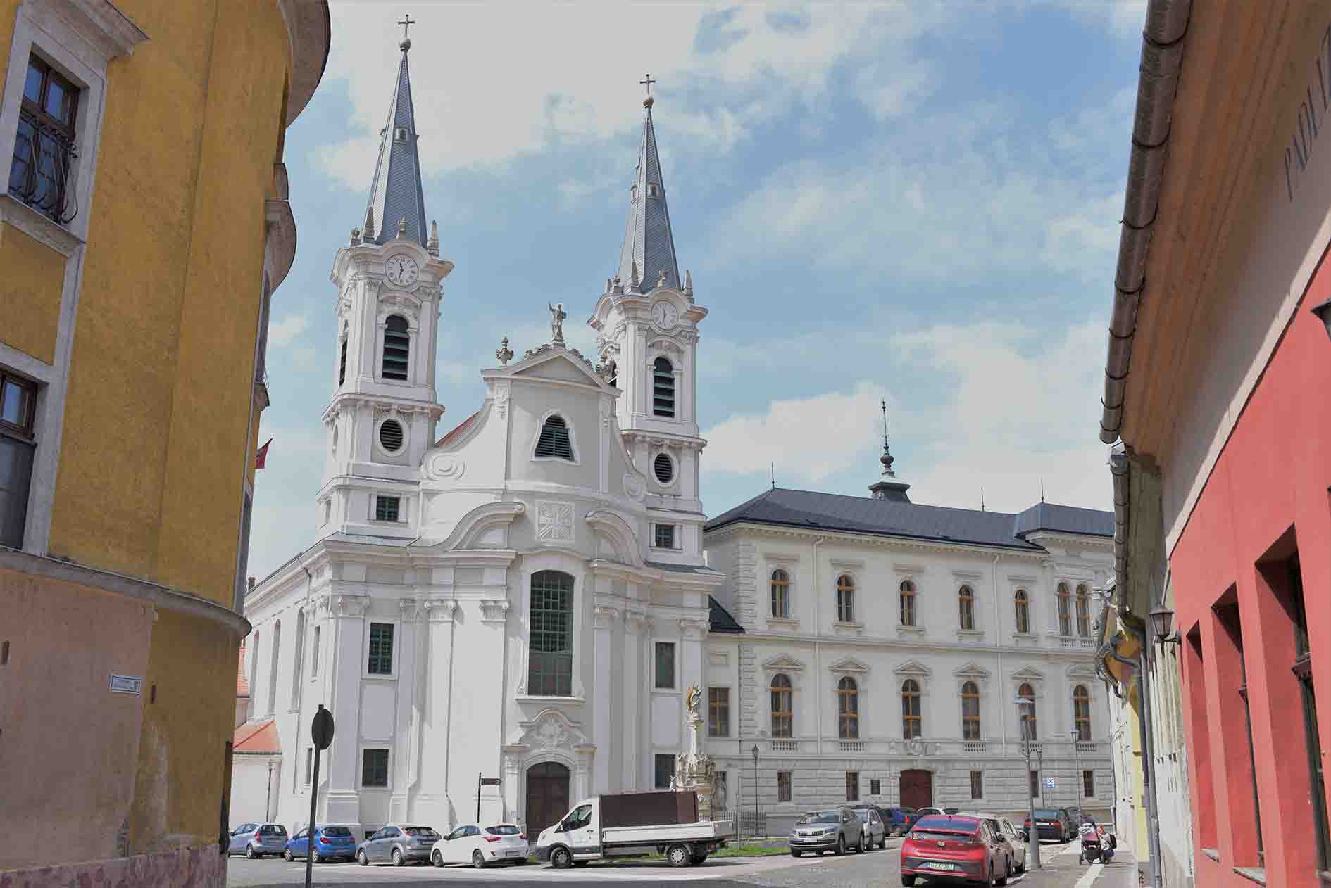Legjobban a templomépület emlé­keztet a jezsuita időkre, habár eseté­ben sem beszélhetünk eredeti vagy azt idéző állapotokról. A templom a rend feloszlatását követően rövid időre a pá­losoké, majd a bencéseké lett. Tulaj­donjoga a rendházzal együtt szállt az érsekségre, s innentől a Víziváros plé­bániatemplomaként működik. Ekkor, 1788-ban magasították meg a két tor­nyot, majd új főoltár készült (talán egy földrengésben rongálódott meg az ere­deti). Az 1840-es évekre az oldalfalak díszítőfestését részben lemeszelték, és a homlokzaton is alakítottak némiképp – hiszen 1820 és 1856 között, a bazili­ka felszenteléséig ideiglenes érseki fő­székesegyházként szolgált a jezsuiták egykori temploma (ilyen értelemben nem csak a kettővel ezelőtti számunk­ban bemutatott hódmezővásárhelyi templom jezsuita bazilika).
