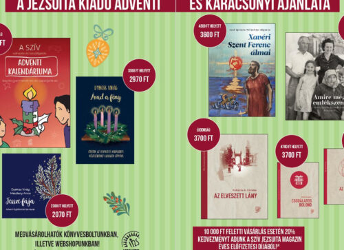 Engedje meg, hogy figyelmébe ajánljuk kiadónk adventi kiadványait: egy új, színezős és beszélgetős kalendáriumot, valamint Dyekiss Virág adventi foglalkoztatóját és karácsonyváró ötletgyűjteményes könyvét. Karácsonyi ajándéknak pedig legfrissebb könyveinket: köztük egy krimit, Hofher József SJ édesanyjának kordokumentumként és drámai fordulatokban gazdag családtörténetként is remek visszaemlékezéseit, valamint egy tanulmánykötetet, illetve Xavéri Szent Ferenc életrajzát, és Úton című irodalmi sorozatunkban megjelent regényeket ajánljuk. (A könyvek részletes leírását és mintaoldalait az alábbi képekre kattintva találja meg.) Tovább olvasom „Adventi és karácsonyi ajánlatunk”