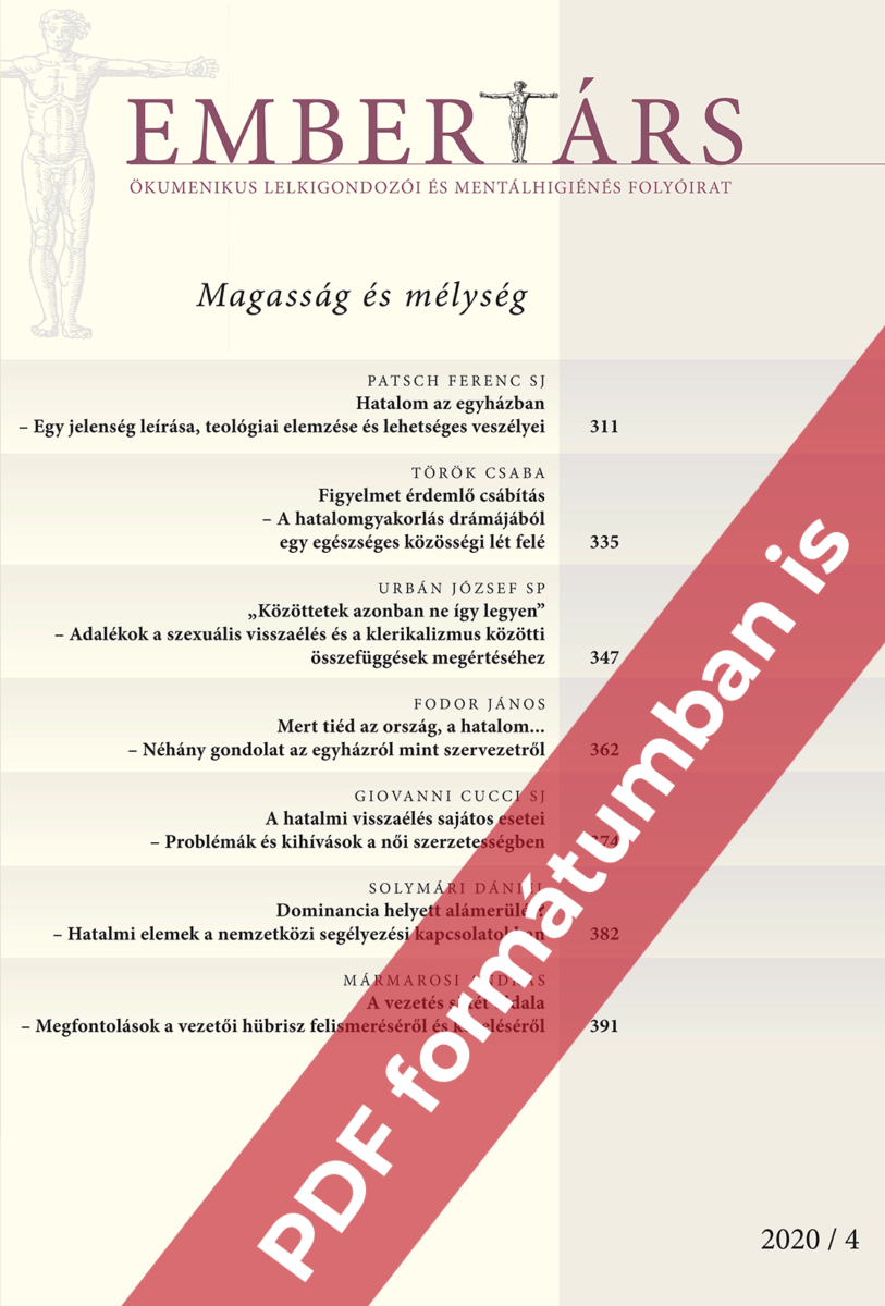 „A szexuális visszaélés hosszú évtizedekre kiható, nemritkán az áldozat egész életét megnyomorító lelki következményeiről egyre többet tudunk. Azt is mindjobban kezdjük érteni, amit Mitchell Garabedian amerikai jogász így fogalmaz meg a Spotlight című filmben: »If it takes a village to raise a child, it takes a village to abuse one« – »Ha egy falu kell ahhoz, hogy egy gyermeket fölneveljenek, akkor ahhoz is egy falu kell, hogy visszaélést kövessenek el vele szemben.« Dolgozatomban annak megértéséhez kívánok segítséget nyújtani, hogy miként járul hozzá a klerikalizmus mint intézményi kultúra az egyházon belüli szexuális visszaélésekhez: (1) mit jelent és miért fontos a szexuális abúzus rendszerszemléleti megközelítése; (2) mi általában a hatalom, a spirituális tekintély szerepe a szexuális visszaélésekben; (3) mit kell értenünk a klerikalizmuson mint kultúrán, (4) és melyek a jellemzői; s végül (5) hogyan tudunk kilépni a klerikalizmus megnyomorító rendszeréből?”